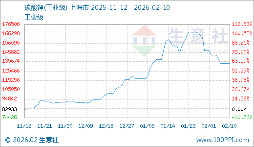 据生意社监测,碳酸锂02月10日最新价格136000.00元/吨,最近60天上涨42.06%。